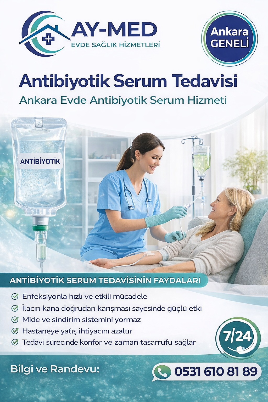Ay-Med Evde Sağlık olarak Ankara evde antibiyotik serum hizmetimizi;