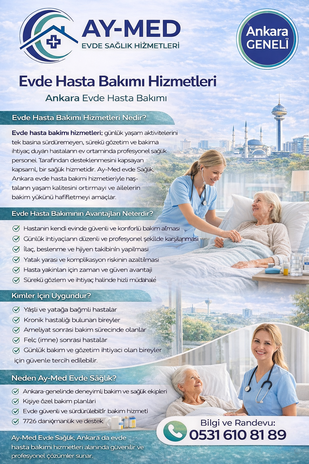 Ay-Med Evde Sağlık, Ankara’da evde hasta bakımı hizmetleri alanında güvenilir ve profesyonel çözümler sunar.