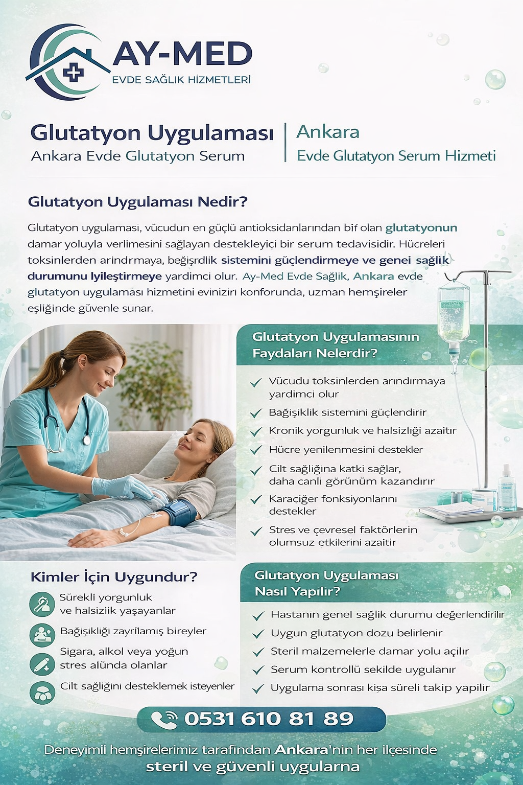 Ay-Med Evde Sağlık olarak Ankara evde glutatyon serum hizmetimizi;